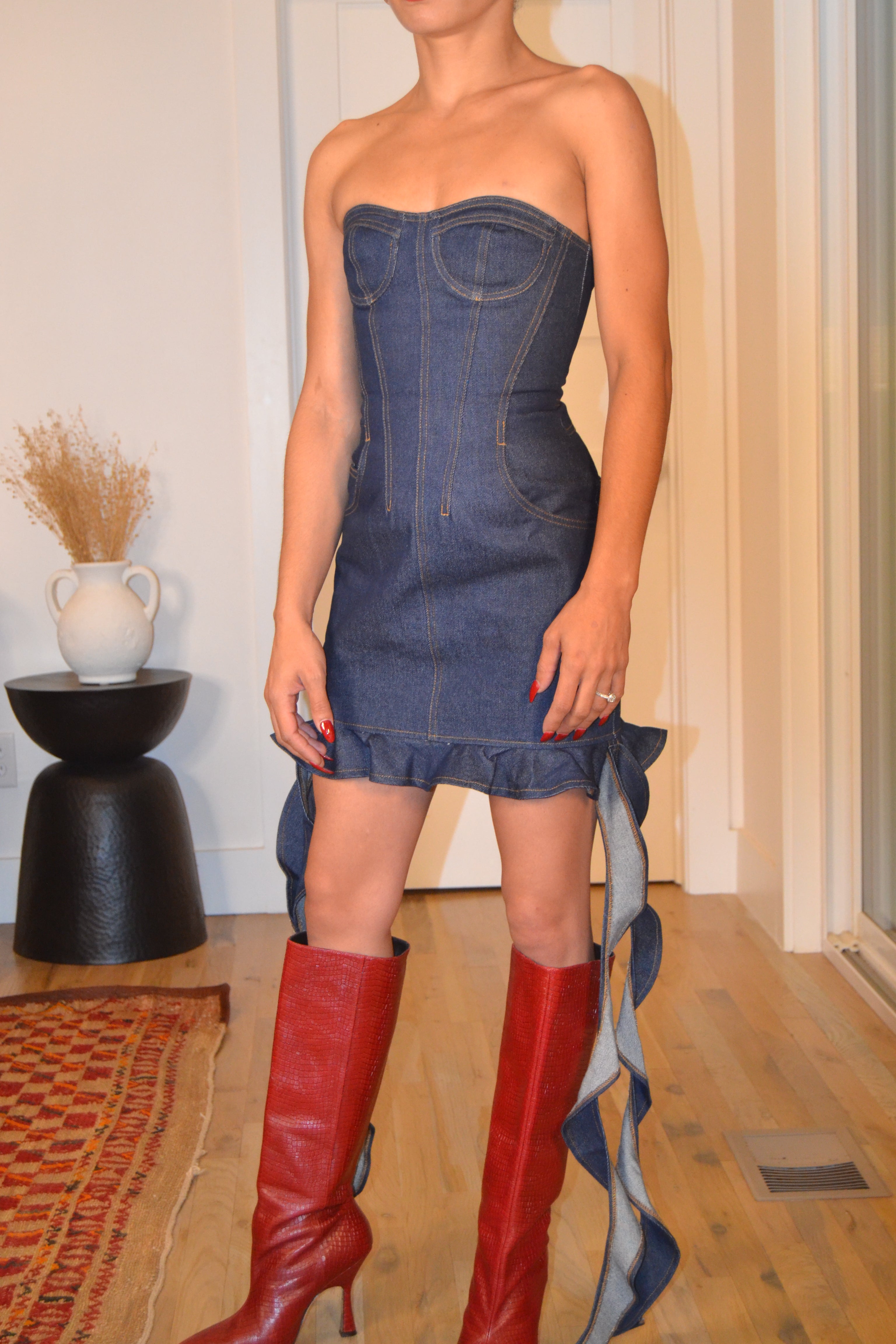 IDLEBONE Women's Vintage Luxury Ruffled Cotton Denim Corset Minidress